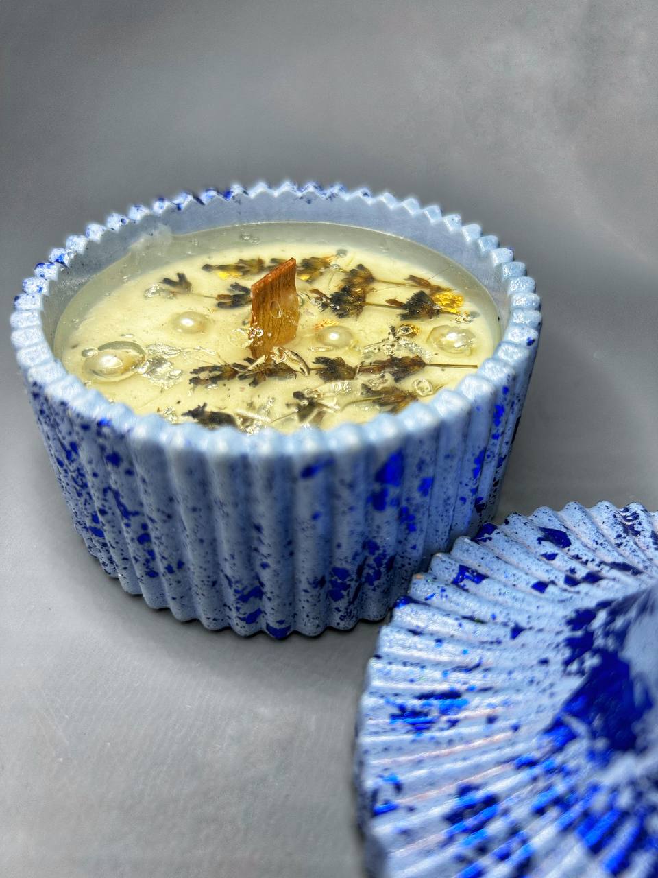 Погрузитесь в атмосферу утончённой роскоши с нашей свечой из гелевого воска. Изящное сочетание сухоцветов, мерцающих жемчужин и золотых акцентов создаёт неповторимый декоративный эффект. Прозрачная структура воска позволяет рассмотреть каждую деталь композиции — словно миниатюрный мир застыл во времени. Идеальный акцент для стильного интерьера, который добавит нотку изысканности и уюта в ваш дом.