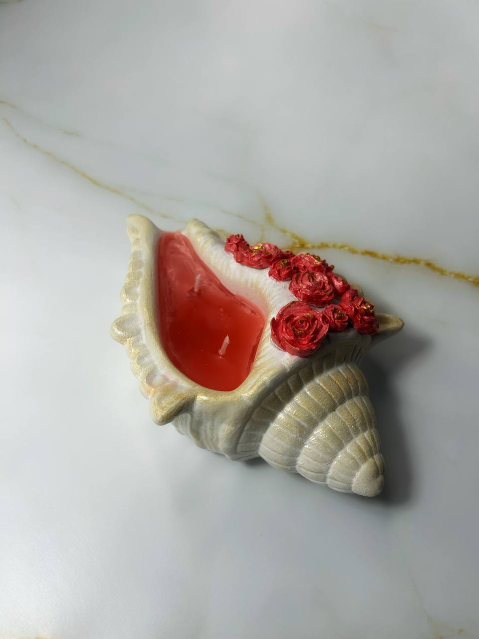 Изящная свеча, заключённая в подсвечник в виде натуральной раковины, украшенную миниатюрными красными розами — воплощение утончённой морской эстетики. Насыщенный красный воск создаёт яркий контраст с перламутровым блеском ракушки, а декоративные цветы добавляют нотку романтики. Этот аксессуар станет изысканным элементом декора, наполняя пространство теплом и уютом. Идеальный выбор для ценителей природных материалов и авторских изделий.